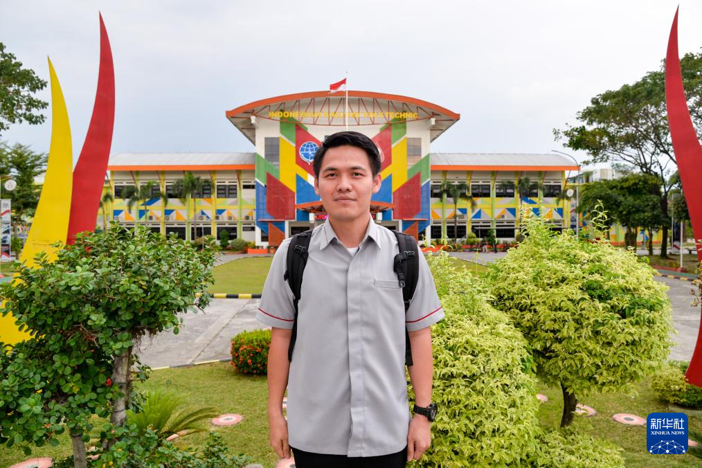 ▲ 2023年6月7日,在位于印度尼西亚茉莉芬的印尼铁路理工学院,雅万高铁首批司机塞蒂亚万拍照留念。新华社记者 徐钦 摄